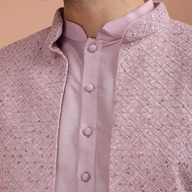 0 review(s) for "Men Pink Printed Kurta Indowestern Sherwani Trouser Set"